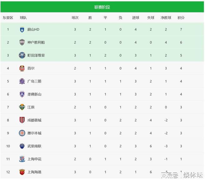 东亚区积分榜